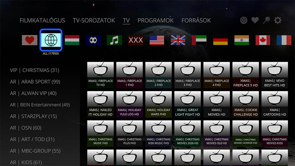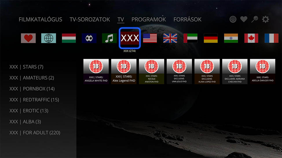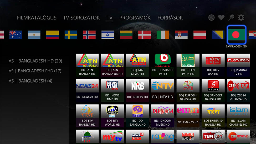 Ha valaki még nem próbálta, talán kétkedve olvassa most, hogy a világ összes országából találunk a programban számtalan tévéadót. Tény, hogy nem néztük végig az összes nemzeti zászlót a főmenüben, de számunkra megnyugtató volt, hogy pl. csak zenei adóból több tucat van albán nyelven, és 50 bangladesi adás mellett 85 kolumbiai műsort is nézhetünk :)